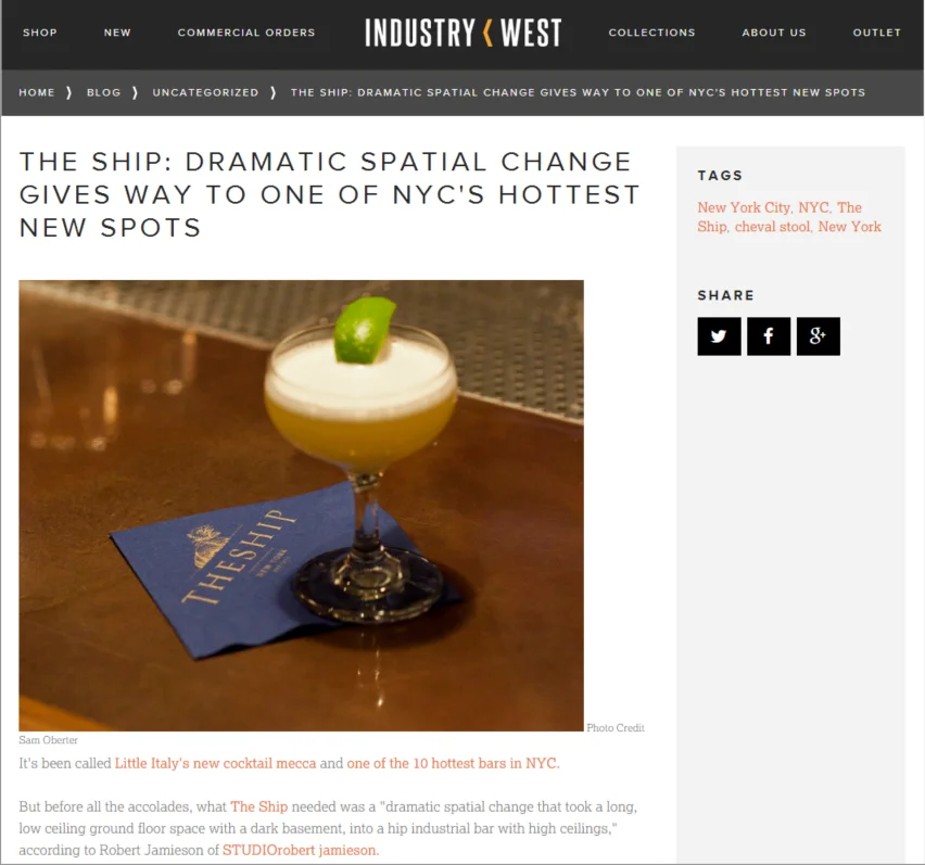 THE SHIP featured in The Culture Trip: Design Lover's Guide to Manhattan